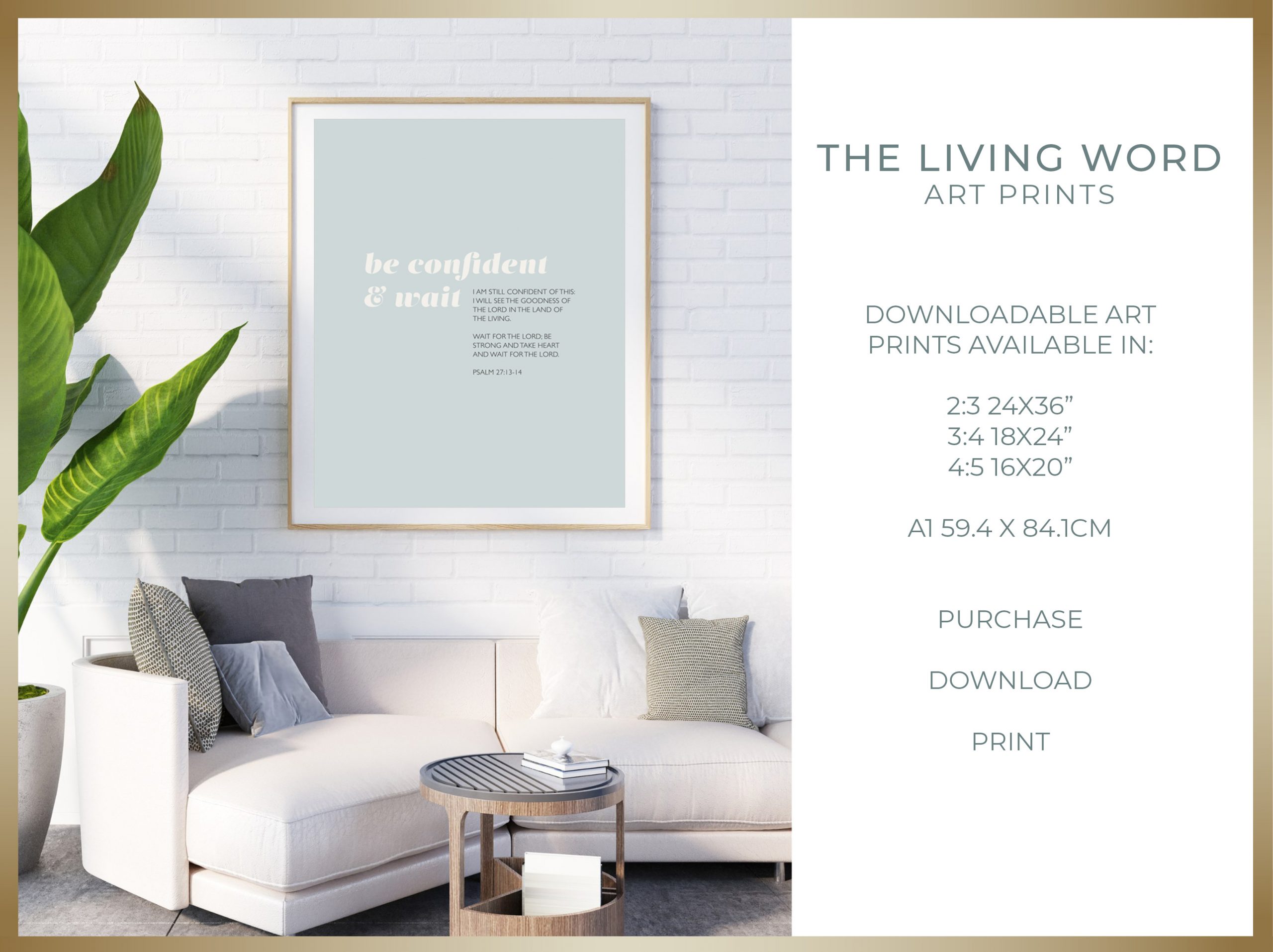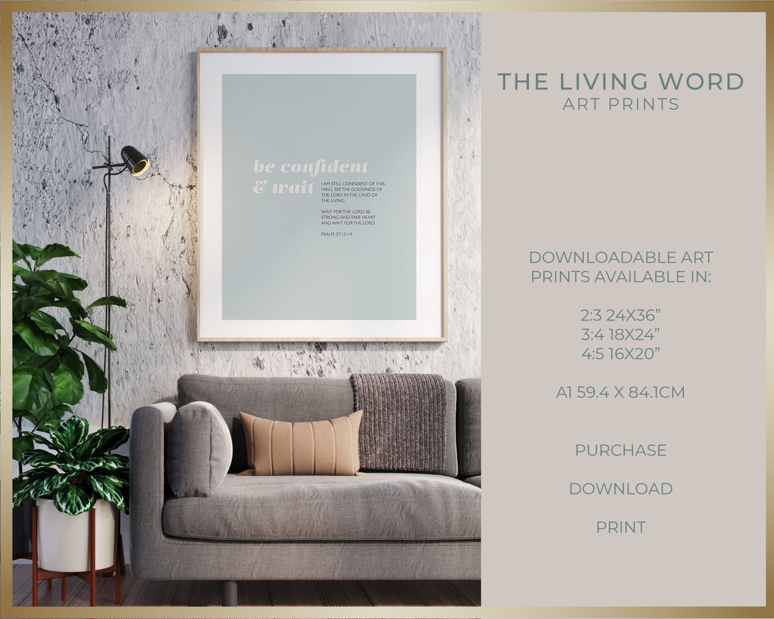 Christian Wall Art, Duck Egg Blue Christian Art Prints, Bible Quotes, Psalm 27, Hope Quotes, Waiting Quotes, Confidence Quotes, God’s Word, Living Water Prints, DIGITAL PRINT, WALL Art, Bible Art, Jesus Art, Bible Typography, Verse Print, Scripture Poster, Christmas Wall Art Prints