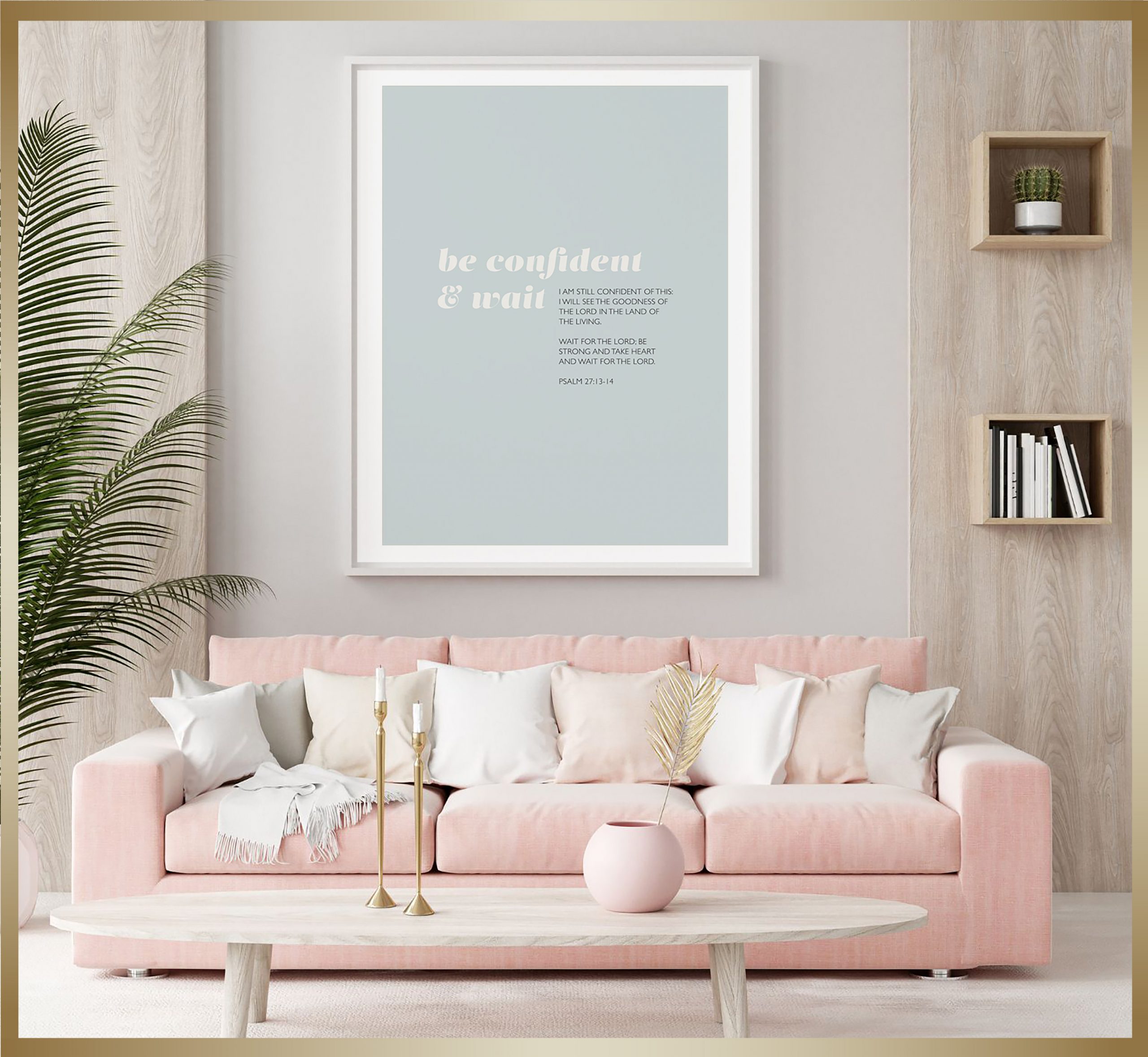 Transform your surroundings with the powerful message of “Be Confident and wait.” Order your Bible Verse Wall Art today and infuse your space with the timeless beauty of scripture, creating a home filled with faith and inspiration.